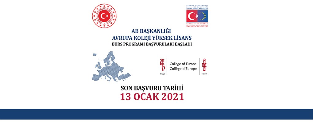 Avrupa Birliği Başkanlığı tarafından, özel sektör ve sivil toplum kuruluşlarının desteğiyle, akademik açıdan başarılı olan iyi derecede İngilizce ve Fransızca bilen ve Avrupa Birliği alanında yüksek lisans yapmak isteyen öğrencilere 2021-2022 akademik yılı için Avrupa Koleji'nde (College of Europe) burs imkânı sağlanması öngörülmektedir.