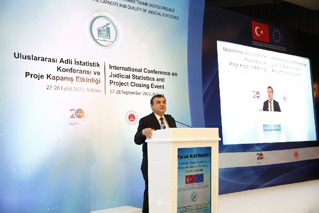 The closing ceremony of the “Increasing the Capacity and Quality of Judicial Statistics” project implemented under the Instrument for Pre-Accession Assistance (IPA) 2014 programme was held with the participation of Deputy Minister of Foreign Affairs and Director for EU Affairs Ambassador Faruk Kaymakcı on 27 September 2022.