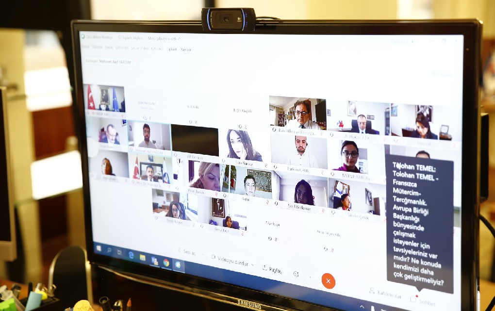 Dışişleri Bakan Yardımcısı ve AB Başkanı Büyükelçi Faruk Kaymakcı, ''Türkiye-Avrupa Birliği İlişkileri Ekseninde AB Burs ve Fon İmkânları'' konulu çevrimiçi toplantıya katıldı