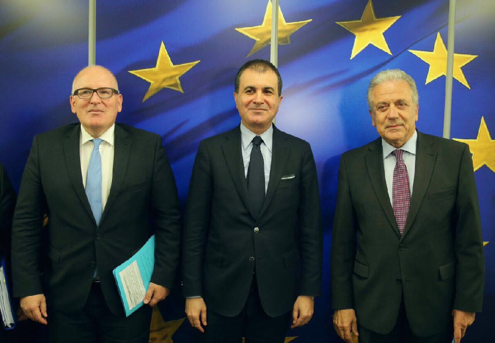 Minister for EU Affairs and Chief Negotiator Ömer Çelik met with First Vice-President of the European Commission Frans Timmermans, European Commissioner for European Neighbourhood Policy and Enlargement Negotiations Johannes Hahn and European Commissioner for Migration, Home Affairs and Citizenship Dimitris Avramopulos during his official visit to Brussels on May 10, 2017.