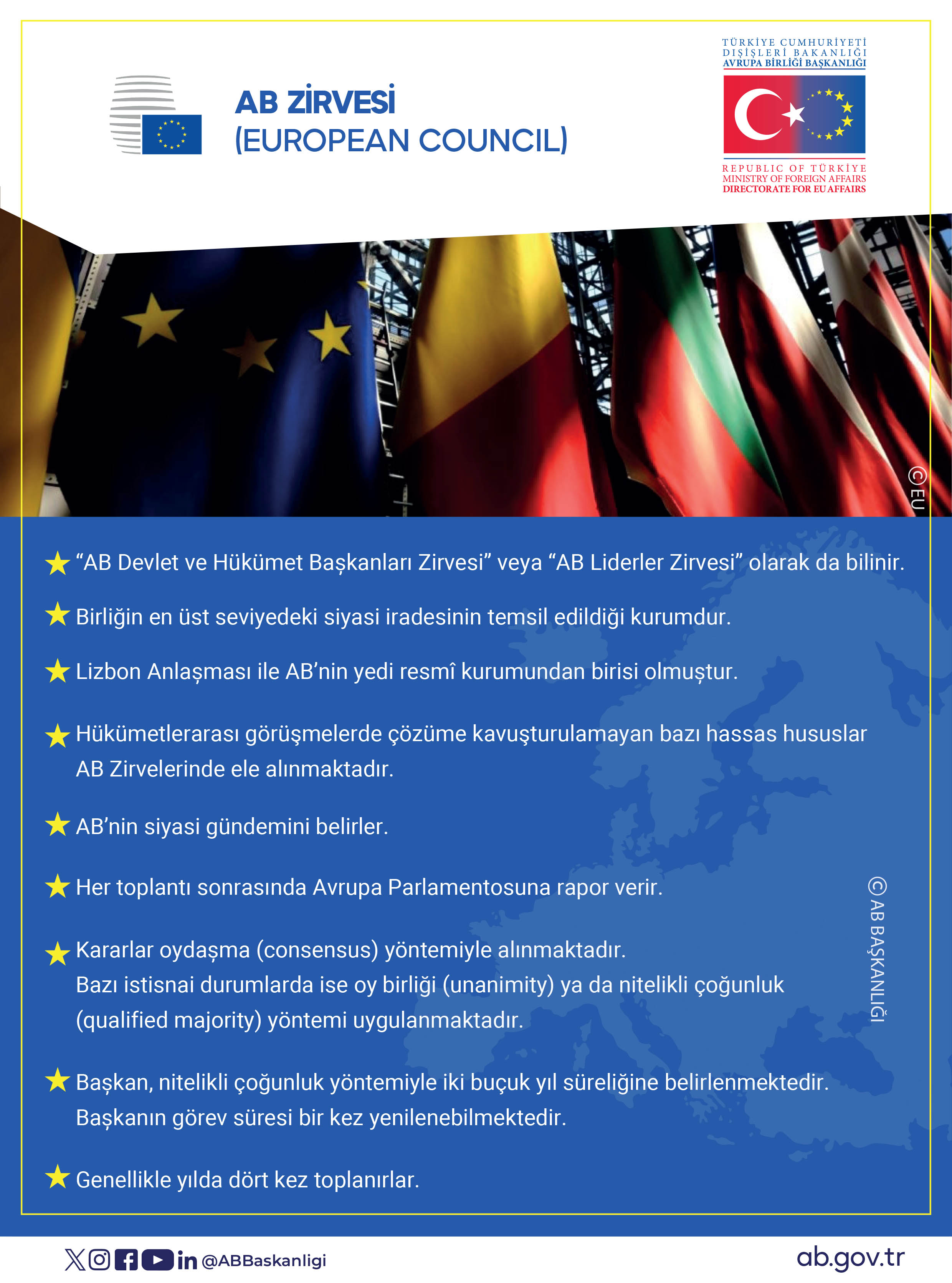 İnfografiklerde yer alan bilgiler, yayın tarihi itibariyle geçerli güncel veri ve belgeler esas alınarak derlenmiştir. Bununla birlikte, Avrupa Birliği’nin hızlı değişen gündemi dikkate alındığında söz konusu bilgilerde bazı güncelleme veya değişiklikler meydana gelebilmektedir. Kullanım esnasında infografiklerde atıfta bulunulan konuların ilgili kaynaklardan en güncel versiyonlarının esas alınması önerilmektedir.
