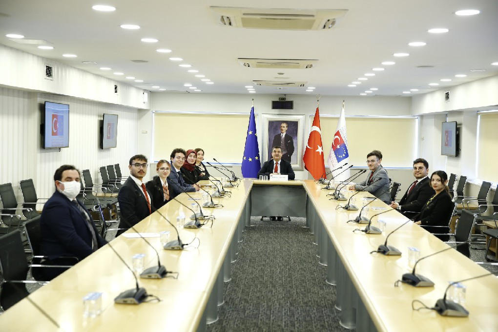 Dışişleri Bakan Yardımcısı ve AB Başkanı Büyükelçi Faruk Kaymakcı, Başkanlığımızı ziyaret eden İstanbul Üniversitesi Siyasal Bilgiler Fakültesi Avrupa İlişkileri Kulübü temsilcileriyle 5 Ağustos 2022 tarihinde biraraya geldi.