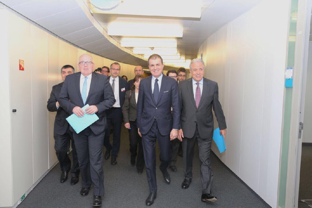 Avrupa Birliği Bakanı ve Başmüzakereci Ömer Çelik Brüksel ziyareti çerçevesinde AB Komisyonu Birinci Başkan Yardımcısı Frans Timmermans, Komşuluk Politikası ve Genişleme Müzakerelerinden sorumlu AB Komiseri Johannes Hahn ve Göç, İçişleri ve Vatandaşlıktan sorumlu AB Komiseri Dimitris Avramopoulos ile görüşmeler gerçekleştirdi.