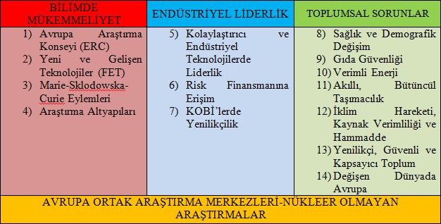 Program, Ar-Ge alanında yürütülmekte olan 7. Çerçeve Programı (ÇP), Avrupa Teknoloji ve Yenilik Enstitüsü(EIT) tarafından yürütülen faaliyetler ile Rekabetçilik ve Yenilikçilik alanında yürütülen Çerçeve Programının yenilikçiliğe ilişkin eylemlerini ve Avrupa Ortak Araştırma Merkezleri tarafından yürütülmekte olan nükleer olmayan araştırmaları bünyesine almıştır.