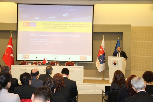 Devlet Bakanı ve Başmüzakereci Sayın Egemen Bağış'ın katılımlarıyla, Avrupa Birliği Genel Sekreterliği'nin yararlanıcısı olduğu, IPA'nın I. Bileşeni altında yürütülmekte olan projelerle hedeflenen sonuçların erişilmesine yönelik bir izleme yapılmasını mümkün kılacak "Türkiye'de Sonuç Odaklı İzleme Sistemi Kurulması" projesi kapsamında tüm yararlanıcı kurum ve kuruluş temsilcilerine yönelik "Sonuç Odaklı İzleme Sistemi Tanıtım Toplantısı" Genel Sekreterliğimizde gerçekleştirilmiştir.