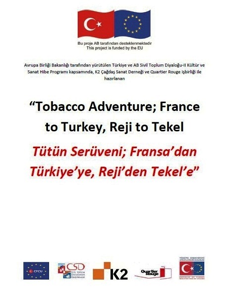"Tobacco Adventure: France to Turkey, Reji to Tekel Project" is carried out within the Turkey and European Union Civil Society Dialogue II, Culture and Arts grant scheme. The grant beneficiary of the Project is K2 Modern Arts Association and the project partner is Quartier Rouge, from France.