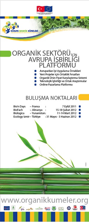 "Developing European Inter-Cluster Alliance for Organic Agriculture" is carried out within the Turkey and European Union Civil Society Dialogue II, Agriculture and Fishery grant scheme. The grant beneficiary of the project is Aegean Exporters’ Association from Izmir and the project partners are Ekoconnect e.V.- International Centre For Organic Agriculture Of Central And Eastern Europe from Germany, Organic Products Cluster.from Greece, Pole Europeen Agroalimentaire Pour La Communication, La Recherche Et L'Innovation from France and Ege University; Ecological Agriculture Organization Association ; Ecological Producers Association from Turkey.