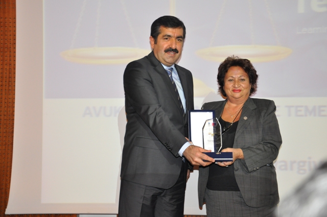Sn. Aydın Nezih DOĞAN Sn. Berra BESLER'e plaketini takdim ederken