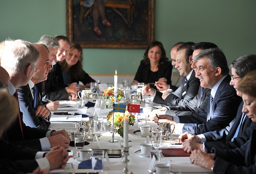 President Abdullah Gül, as part of his program in Stockholm, met with Prime Minister Fredrik Reinfeldt of Sweden, with whom he afterwards held a joint press conference. Prior to the joint press conference, Turkish Foreign Minister Ahmet Davutoğlu and his Swedish counterpart, Carl Bildt, signed the Türkiye-Sweden Strategic Partnership Agreement.