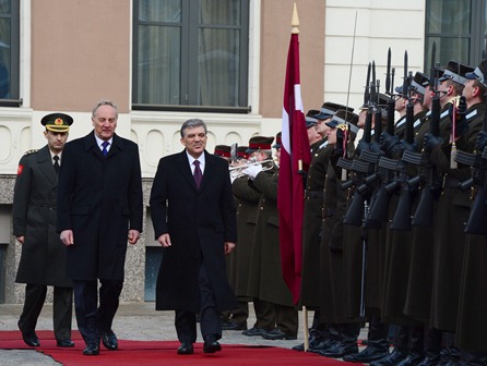 Letonya Cumhurbaşkanı Andris Berzins'ın daveti üzerine Riga'ya gelen Sayın Gül için 2 Nisan 2013 tarihinde ilk olarak Belediye Meydanı'nda bir resmi karşılama töreni yapıldı.