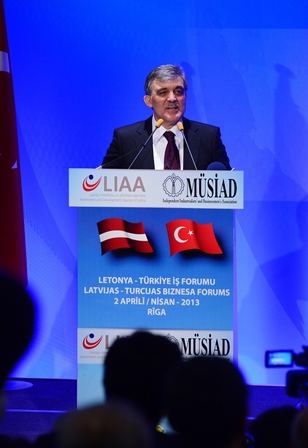 Letonya Meclis Başkanı Solvita Aboltina ile de bir görüşme gerçekleştiren Sayın Gül, Türk-Leton İş Forumu'nun kapanış oturumunda bir konuşma yaptı. Sayın Gül ayrıca, Letonya İşgal Müzesi’ni de ziyaret etti.