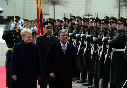 Letonya resmi ziyaretinin ardından Litvanya’daki resmi temaslarına başlayan Cumhurbaşkanı Sayın Gül için Litvanya Cumhurbaşkanlığı Sarayı’nda resmi bir karşılama töreni düzenlendi. Baş başa ve heyetler arası görüşmelerin ardından Sayın Gül ve Litvanya Cumhurbaşkanı Dalia Grybauskaite tarafından ortak basın toplantısı düzenlendi.