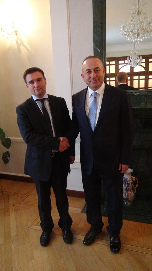 Bakan Çavuşoğlu ziyaretinin ikinci gününde Ukrayna Dışişleri Bakanı Pavlo Klimkin ile görüştü. Bakan Çavuşoğlu, Dışişleri Bakanı Klimkin ile görüşmesinden sonra yaptığı açıklamada Türkiye'nin Ukrayna'ya olan desteğini yinelediklerini belirterek "Kırım'ın ilhakını tanımadığımızı söyledik. Diğer taraftan hem iki ülke arasındaki ilişkiler konusunda hem de serbest ticaret anlaşmasının bir an evvel artık yürürlüğe girmesi konusunda hemfikir olduk" ifadesini kullandı.