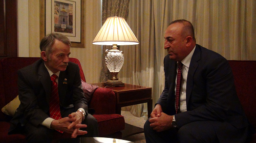 Avrupa Birliği Bakanı ve Başmüzakereci Mevlüt Çavuşoğlu ve beraberindeki heyet, 17-18 Temmuz 2014 tarihlerinde Kiev’de resmi temaslarda bulundu. Kiev Büyükelçisi Yönet Can Tezel ve diğer yetkililer tarafından karşılanan Bakan Çavuşoğlu, ziyaretinin ilk gününde Kırım Tatar Türkleri Önderi Mustafa Abdülcemil Kırımoğlu ile görüştü.