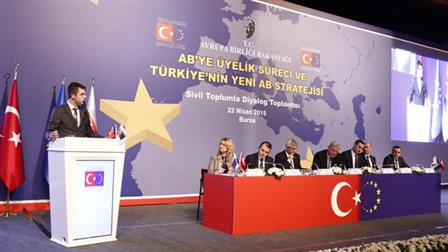 The Ministry for EU Affairs hosted a Civil Society Dialogue Meeting on “EU Accession Process and Türkiye’s New EU Strategy” on 22 April 2015 in Bursa, with the participation of around 1500 representatives from non-governmental organizations, local administrations, the business world and academia in Bursa.