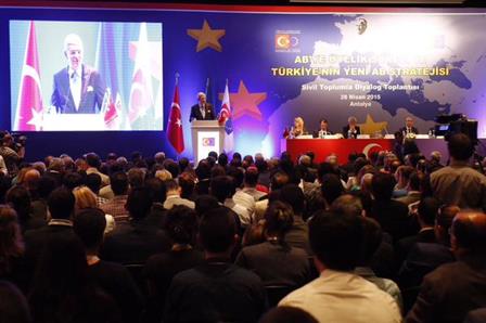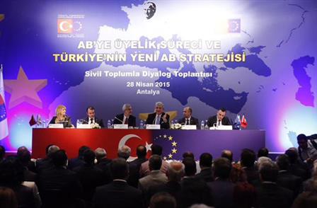 The Ministry for EU Affairs hosted a Civil Society Dialogue Meeting on “EU Accession Process and Türkiye’s New EU Strategy” on 28 April 2015 in Antalya, with the participation of around 1500 representatives from non-governmental organizations, local administrations, the business world and academia in Antalya.