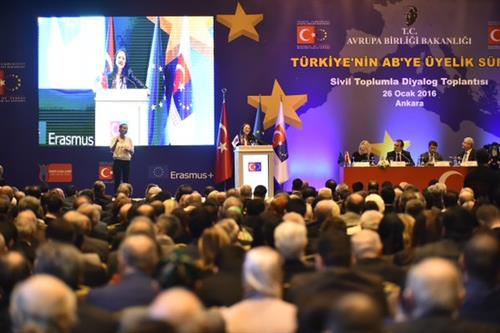 Ministry for EU Affairs organised a Civil Society Dialogue Meeting on "Türkiye's EU Accession Process" on 26 January 2016 in Ankara with the participation of Minister for EU Affairs and Chief Negotiator Ambassador Volkan Bozkır. More than 2500 representatives of civil society organizations, local administrations, business world and universities attended the meeting.