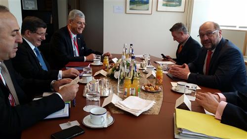 Prime Minister Davutoğlu holding a series of meetings with the leaders of EU member states ahead of the Summit first met with German Chancellor Angela Merkel and EU Term President Dutch Prime Minister Mark Rutte at Türkiye’s Permanent Delegation to the European Union. Having a meeting with his Greek counterpart Alexis Tsipras, Prime Minister Davutoğlu also met with the leaders of France, Germany, the United Kingdom, Italy and Federica Mogherini, High Representative of the EU for Foreign Affairs and Security Policy.
