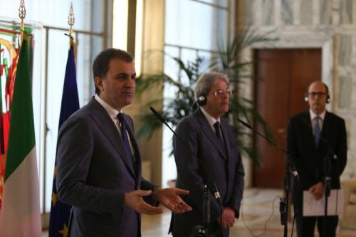 AB Bakanı ve Başmüzakereci Ömer Çelik, Roma’da Dışişleri Bakanı Paolo Gentiloni ile görüştü. İki Bakan, görüşmenin ardından ortak basın toplantısı düzenledi.