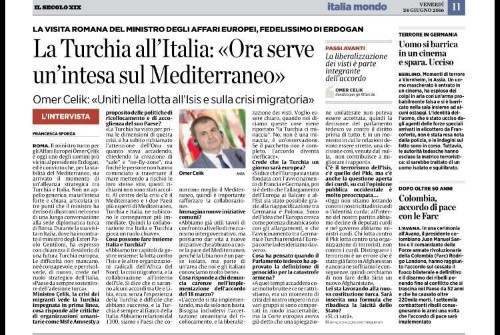 AB Bakanı ve Başmüzakereci Ömer Çelik, Roma'da La Stampa gazetesine mülakat verdi.