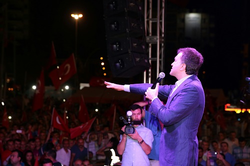 Avrupa Birliği (AB) Bakanı ve Başmüzakereci Ömer Çelik, Fetullahçı Terör Örgütü'nün (FETÖ) darbe girişiminin ardından Uğur Mumcu Meydanı'nda tutulan "demokrasi nöbeti"ne katıldı. Burada vatandaşlara hitap eden AB Bakanı Ömer Çelik, Türkiye'nin tarihte görülmemiş bir düşman saldırısına uğradığını söyledi.