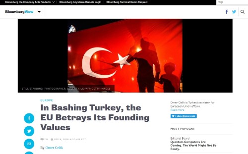 Minister for EU Affairs and Chief Negotiator Ömer Çelik’s Article Published in Bloomberg