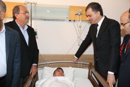 Bakan Ömer Çelik ayrıca hastanede yaralıları ziyaret etti.