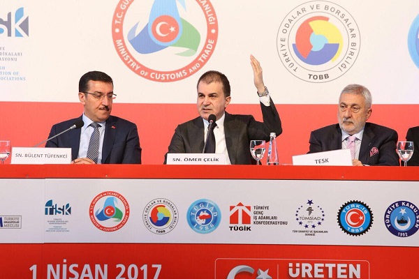 "Önce 'Brexit', sonra yeni ABD Başkanıyla birlikte küresel ekonomide yeni bir belirsizlik başladı. Küresel dengelerin yeniden oluştuğu farklı bir döneme giriyoruz. Bu yeni döneme iyi hazırlanan, reform yapmakta öne geçen ülkeler geleceğin kazananı olacak. Yani hazırlığı iyi yapan ülkeler, toz duman dağıldığında hızla yoluna devam edecek. İşte bu yüzden dışarısı kötüleşirken, içeride safları sıklaştırmalıyız. Gün el ele, omuz omuza verme günüdür. İşçi, işveren, üretici ve kamu görevlileri olarak, hep birlikte çalışma günüdür. Bu kritik dönemde, şehirlerimizi daha fazla öne çıkarmamız lazım. Yeni yapısal reformları hayata geçirmemiz ve küresel rekabette bizi öne çıkaracak adımları hızla atıyor olmamız lazım."