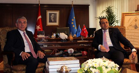 Minister for EU Affairs and Chief Negotiator Egemen Bağış received the former ambassador of Türkiye to Syria Ömer Önhon in his office. After the meeting Bağış answered journalists' questions about the visa liberalization for Türkiye. Bağış mentioned that the decision which has been taken today about the issue is pleasing.  Bağış also continued that contrary to what is believed visa liberalization for Türkiye would provide more positive returns to Europeans than to Turks.