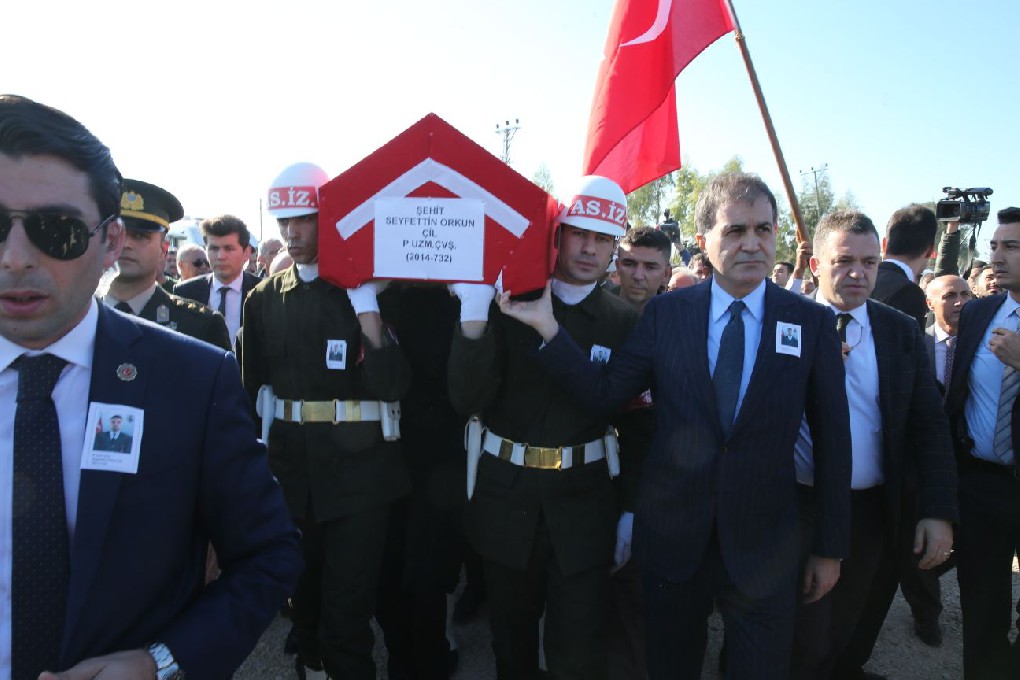 AB Bakanı ve Başmüzakereci Ömer Çelik, Hakkari’nin Şemdinli ilçesinde güvenlik güçlerinin sürdürdüğü operasyonda PKK'lı teröristlerle çıkan çatışmada şehit olan Piyade Uzman Çavuş Seyfettin Orkun Çil’in, memleketi Adana’da düzenlenen cenaze törenine katıldı.