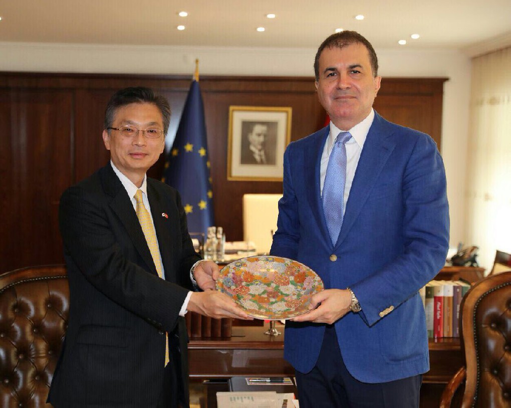 Avrupa Birliği Bakanı ve Başmüzakereci Ömer Çelik, Japonya'nın Ankara Büyükelçisi Hiroshi Oka'yi 8 Haziran 2017 tarihinde AB Bakanlığında kabul etti.