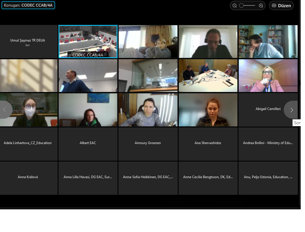 The Erasmus+ Programme (the Union Programme of the EU in the fields of education, youth and sport organized by the European Commission) Committee was held online on 14 January 2022. EU Affairs Experts Arzu Akar and Dr. Petek Karatekelioğlu and Assistant Specialist Umut Şaşmaz the Committee meeting as the representatives of the Directorate for EU Affairs.