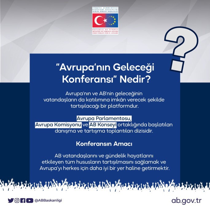 Dışişleri Bakanlığı AB Başkanlığı, Avrupa’nın ve AB’nin geleceği üzerine gençlerin, gençlik alanında çalışan STK/derneklerin, genç liderlerin ve akademisyenlerin görüşlerini almak üzere çevrimiçi bir söyleşi serisi düzenlenmiştir.