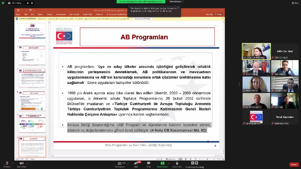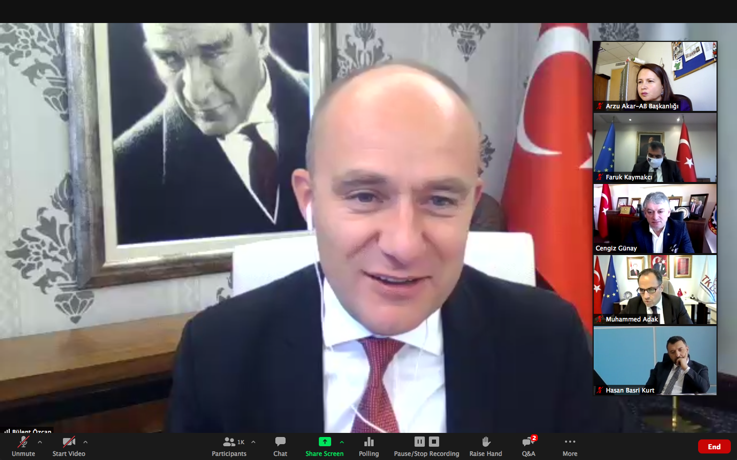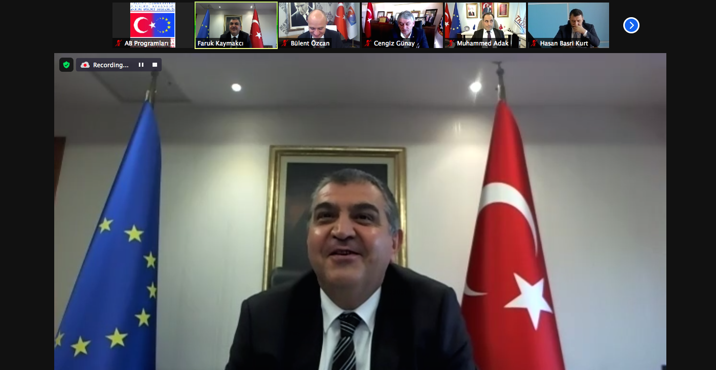 Global Girişimcilik haftası vesilesiyle Başkanlığımızca düzenlenen AB Fonları Kapsamında Girişimcilik Fırsatları Toplantısı, Dışişleri Bakan Yardımcısı ve AB Başkanı Büyükelçi Faruk Kaymakcı’nın katılımlarıyla 12 Kasım 2021 tarihinde çevirimiçi olarak gerçekleştirildi.
