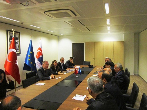 Çalışma ziyaretinin ikinci gününde AB Müşaviri Sayın Sinan AYHAN'ın eşlik ettiği VHB encümen üyeleri, AB Nezdinde Türkiye Daimi Temsilcisi Büyükelçi Sayın Selim YENEL ve AB Nezdinde Türkiye Daimi Temsilci Yardımcısı Sayın Dr. Nurşen NUMANOĞLU tarafından kabul edildi. Ziyarette Büyükelçi Sayın YENEL, Türkiye’nin AB’ye üyelik süreciyle ilgili son durumu değerlendirdikten sonra yerel düzeyde AB ile ilgili konularda farkındalığın ve bilgi seviyesinin artmasının AB’ye üyelik sürecimize sağlayacağı katkıyı vurguladı.