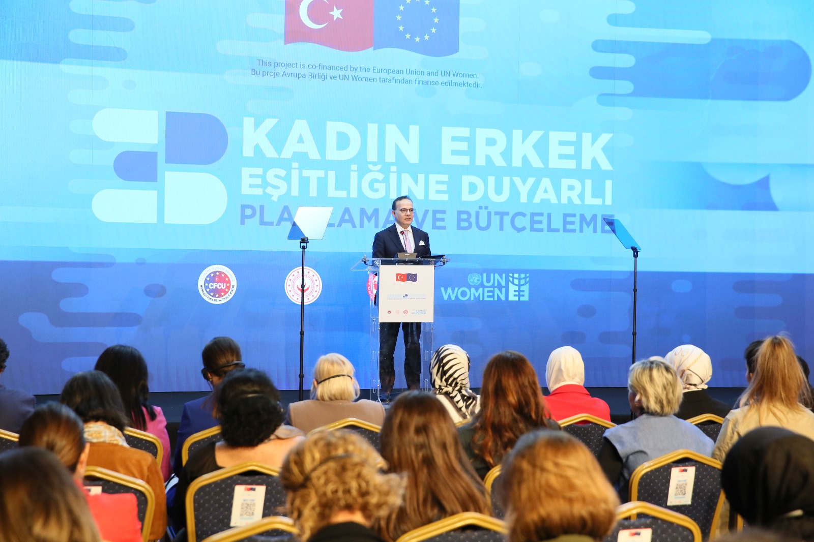Deputy Minister of Foreign Affairs and Director for EU Affairs Ambassador Mehmet Kemal Bozay delivered a speech at the international conference titled " Gender Responsive Budgeting as a Transformative Approach Towards Equal and Equitable Society: International Experiences," held on May 29-30, 2024, within the scope of the project “Implementing Gender-Responsive Planning and Budgeting in Türkiye".